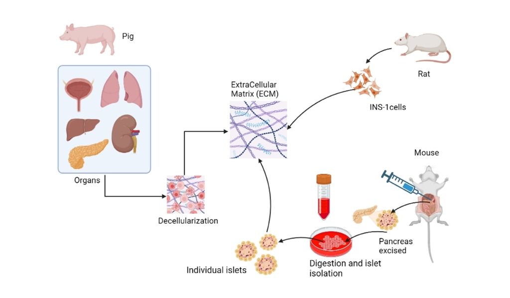 Dhandapani, Boabekoa, Vermette. ExtraCellular Matrix from Decellularized Porcine Organs as Scaffolds for Insulin-Secreting Cells and Pancreatic Islets. Frontiers in Endocrinology, accepted for publication (2026).